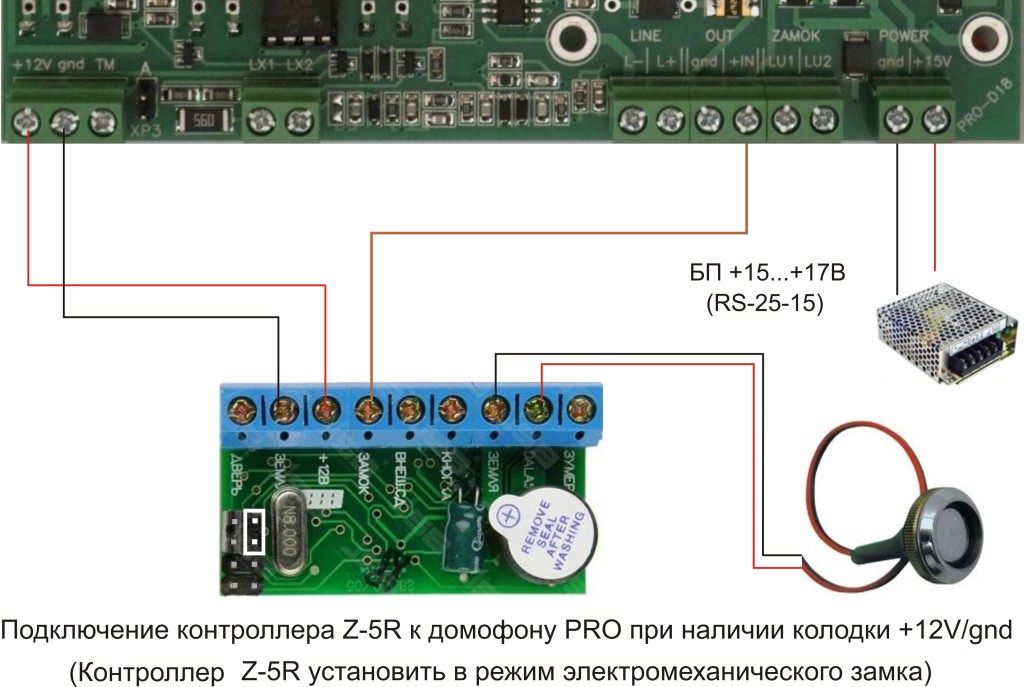 выход с домофона на ЭМ замок через реле подключается к клеммам