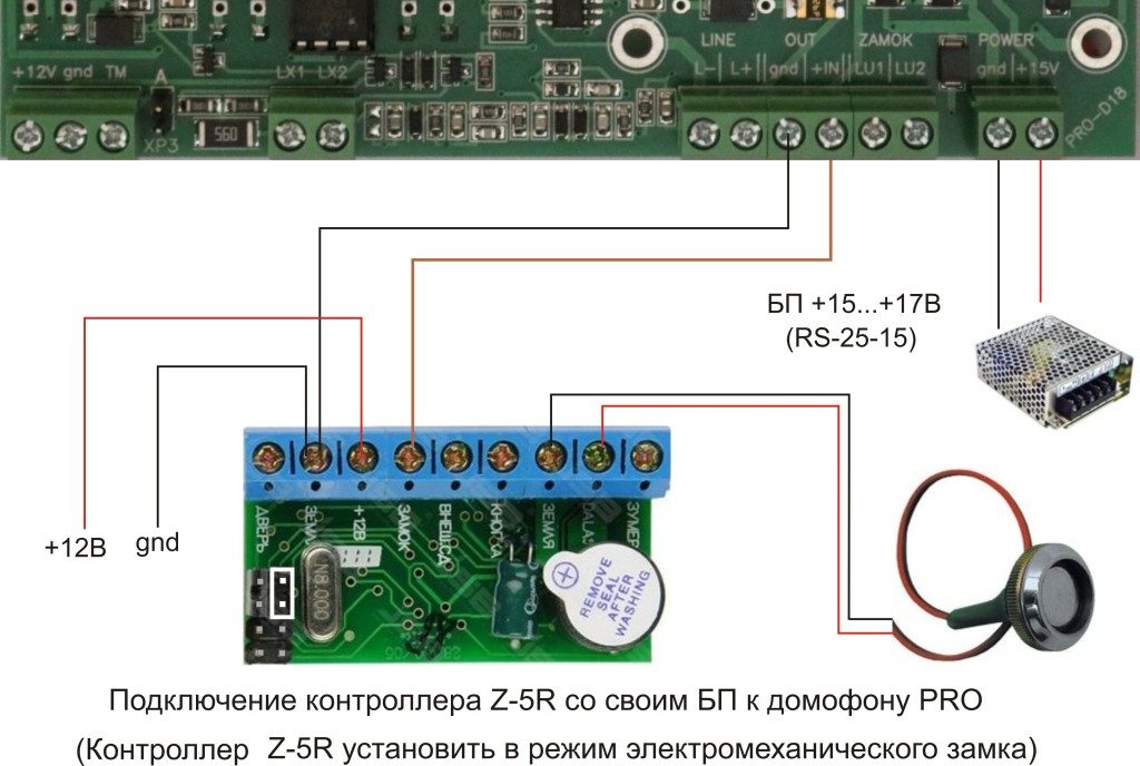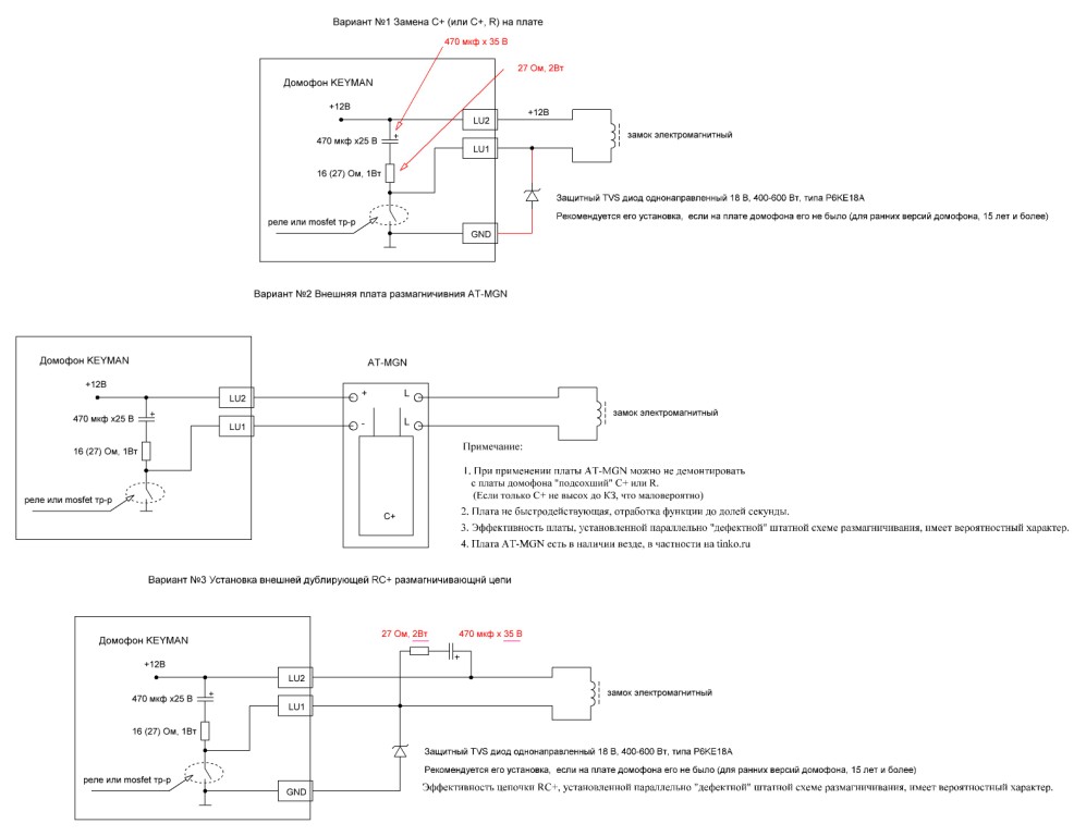 выход с домофона на ЭМ замок через реле подключается к клеммам